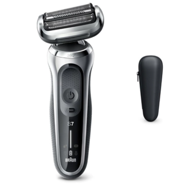 La afeitadora 70-S1000S SERIES 7 WET & DRY de Braun cuenta con cabezal bidireccional inteligentes que se adaptan a cualquier tipo de contorno.El movimiento de 360 grados ayuda a un mejor afeitado.Afeitado en húmedo y seco para utilizarlo en cualquier ocasión.
